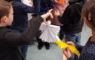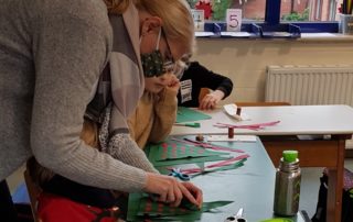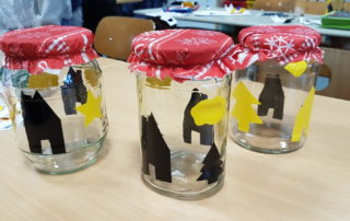 Am Dienstag, den 8.12.20, hatten die Kinder aus Klasse 1 bis 4 die Möglichkeit, in der Vorweihnachtszeit verschiedene tolle Dinge zu basteln. Aufgrund der Corona-Situation konnten in diesem Jahr leider keine Eltern mitwirken. Auch blieben die Kinder in ihrer eigenen Klasse, wurden dort aber von der Lehrkraft und pädagogischen Mitarbeiterinnen mit Rat und Tat unterstützt. Die tollen Ergebnisse können in der unten stehenden Fotoshow begutachtet werden. Es wurden unter anderem Sternenaufhänger, Papierengel, gewebte Tannenbäume, Krippen und verzierte Gläser gestaltet. Die Atmosphäre war sehr schön und die Kinder hatten großen Spaß. Vielleicht wird ja das ein oder andere auch zu Weihnachten an Eltern und Großeltern verschenkt.
