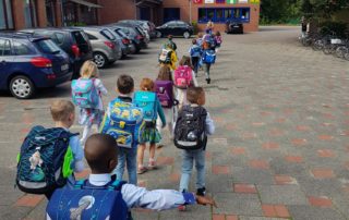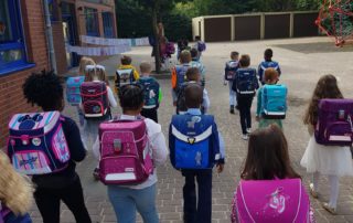 Am Montag, den 31. August 2020, wurde unsere neue erste Klasse eingeschult. Nach der Begrüßung in der St.-Pius-Kirche ging es zum Eingang des Schulgebäudes. Die Fenster waren für den Einschulungstag mit Arbeiten der dritten und vierten Klasse dekoriert worden, um die SchulanfängerInnen willkommen zu heißen. Danach gingen sie schon ganz gespannt mit ihrer Klassenlehrerin Frau Nordmann in den Klassenraum zu ihrer ersten Unterrichtsstunde.