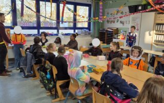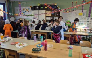 Am Rosenmontag, den 3.3.25, haben die Schüler:innen und die Lehrkräfte einen Faschingsvormittag mit vielen bunten Verkleidungen gefeiert. Nachdem die Kostüme vorgestellt worden waren, hatten die Kinder großen Spaß an den Spielen, welche in ihren Klassenräumen angeboten wurden. Anschließend gab es noch Arbeitspläne zum Thema Karneval.