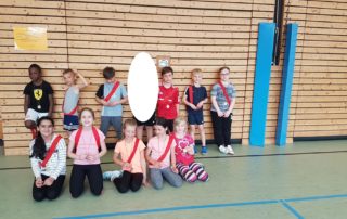 Am Mittwoch, den 24.04.19, hat die Firma „TWK-Events – Kindersport mit Herz“ mit den Kindern der Klassen 2 und 4 einen Sporttag in Form einer Kinderolympiade durchgeführt. Direkt zum Schulbeginn nach den Osterferien standen dabei Sprinten, Schlagballwerfen, Weitsprung sowie ein Staffellauf auf dem Programm. Alle TeilnehmerInnen hatten viel Spaß und freuten sich am Ende über die bei der Siegerehrung verteilten Medaillen.