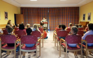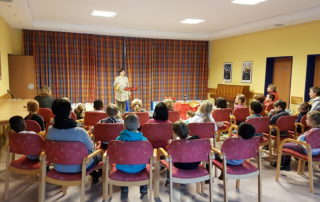Im Dezember durften die Klassen 1 und 2 wie auch schon im vergangenen Jahr einer Märchenerzählerin lauschen. Frau Lemhuis begeisterte die Kinder im Pfarrsaal mit ihren Weihnachtsmärchen auf ihrer kleinen Bühne, so dass alle Kinder gebannt zuhörten. Leckere Kekse und Kinderpunsch rundeten den tollen Vormittag erfolgreich ab.