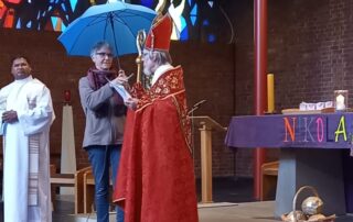 Am Nikolaus-Mittwoch, den 6.12.23, begaben sich die Klassen 1 bis 4 in die St.-Pius-Kirche. Dort nahmen die Kinder und Lehrkräfte an einem Gottesdienst teil, der sehr kindgerecht und interessant gestaltet war, so dass die Kinder großen Spaß daran hatten. Besonders beeindruckend fanden sie den Nikolaus in Person von Herrn Kahle, der seine Rolle sehr überzeugend spielte. Am Ende freuten sich alle Kinder über eine Kerze, die jede Klasse mitnehmen durfte sowie einen kleinen Schoko-Nikolaus. Wir bedanken uns bei allen Planer:innen und bei allen Mitwirkenden, welche diesen tollen Gottesdienst für die Kinder ermöglicht haben.