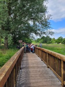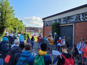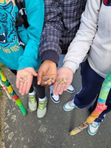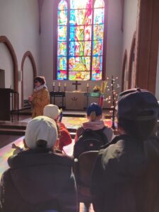 Am Mittwoch, den 11.6.25, begab sich die 4. Klasse mit ihren Lehrkräften zum Abschied ihrer Grundschulzeit zum Pilgern in den Park Links der Weser. Mit dabei sein mussten natürlich die zuvor im Kunstunterricht selbst gestalteten Pilgerstäbe. An verschiedenen Stationen haben sich die Kinder an ihre letzten vier Schuljahre zurückerinnert. Zum Glück spielte auch das Wetter mit, so dass es für alle ein schöner Vormittag war.