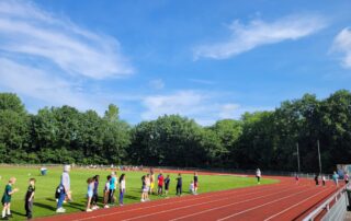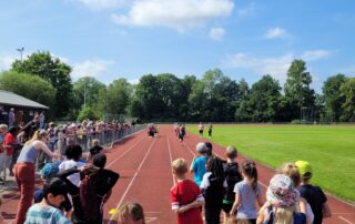 Am Dienstag, den 17.06.25, fand unser Sportfest bei sonnigem Wetter auf dem Sportplatz in Huchting statt. Beim Sprinten, Schlagballwerfen und Weitsprung zeigten die Kinder aus allen vier Klassen großen Einsatz. Besonders freuten sich die Schülerinnen und Schüler auf die beiden Staffelläufe zwischen den Klassen 1 und 2 sowie 3 und 4, welche am Ende durchgeführt wurden. Alle hatten an diesem gelungenen Vormittag viel Spaß bei den Aktivitäten. Wir danken allen Eltern, die uns unterstützt haben.