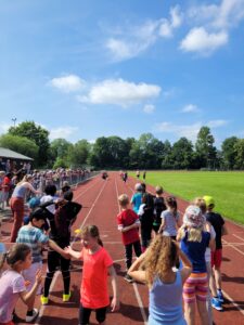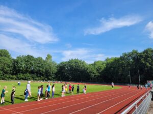 Am Dienstag, den 17.06.25, fand unser Sportfest bei sonnigem Wetter auf dem Sportplatz in Huchting statt. Beim Sprinten, Schlagballwerfen und Weitsprung zeigten die Kinder aus allen vier Klassen großen Einsatz. Besonders freuten sich die Schülerinnen und Schüler auf die beiden Staffelläufe zwischen den Klassen 1 und 2 sowie 3 und 4, welche am Ende durchgeführt wurden. Alle hatten an diesem gelungenen Vormittag viel Spaß bei den Aktivitäten. Wir danken allen Eltern, die uns unterstützt haben.